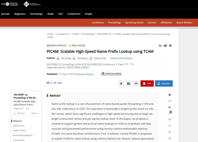 近日,365英国上市嵩天教授团队在新一代互联网架构研究与高性能网络处理技术方面取得重要突破。团队成果“PtCAM: ...